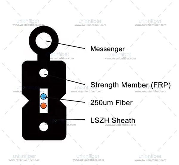 Incorpora un elemento de resistencia a la tracción (generalmente una varilla de fibra de vidrio o un hilo de acero dieléctrico) que le permite colgar entre postes sin necesidad de una mensajería separada. Soporta su propio peso y las cargas del viento.