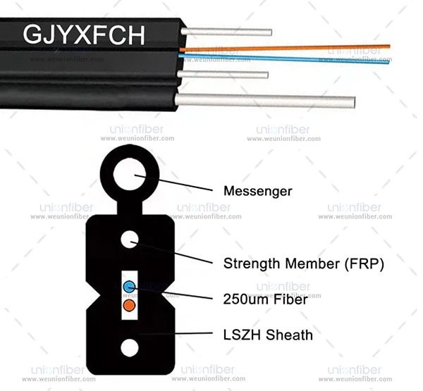 El GJYXFCH es un cable de fibra óptica de **alta calidad y seguridad**. Combina la robustez y protección de un cable exterior estándar para tendido aéreo con la característica de seguridad LSZH (Libre de Halógenos y Baja Emisión de Humos)**, lo que lo convierte en la opción preferida para despliegues en áreas donde la protección de las personas y el medio ambiente es tan importante como la calidad de la transmisión de datos.